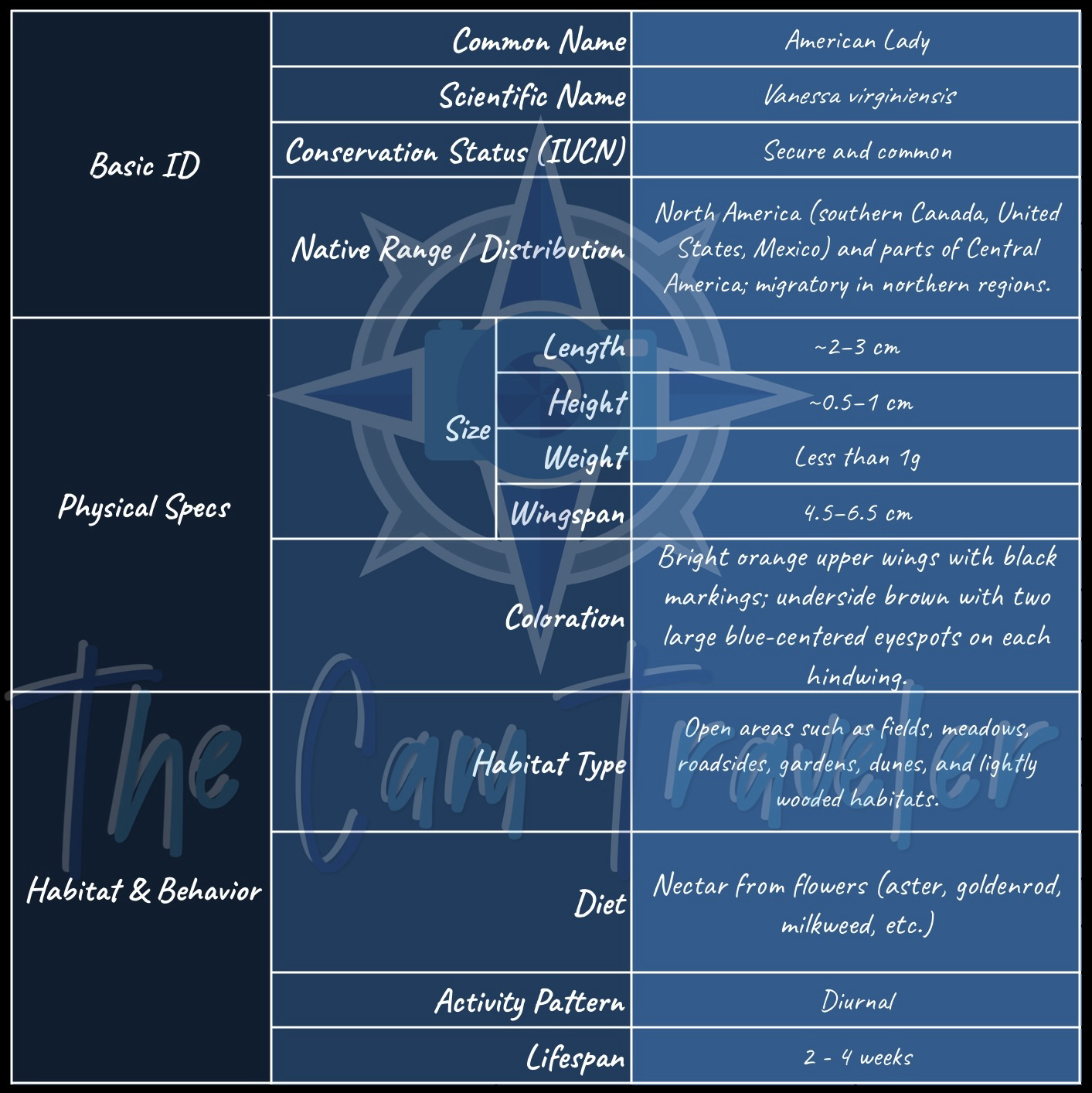 💬 On the underside of each hindwing, you’ll usually see two large eyespots (with blue centers). When the wings are closed, the underside looks like dry leaf litter.